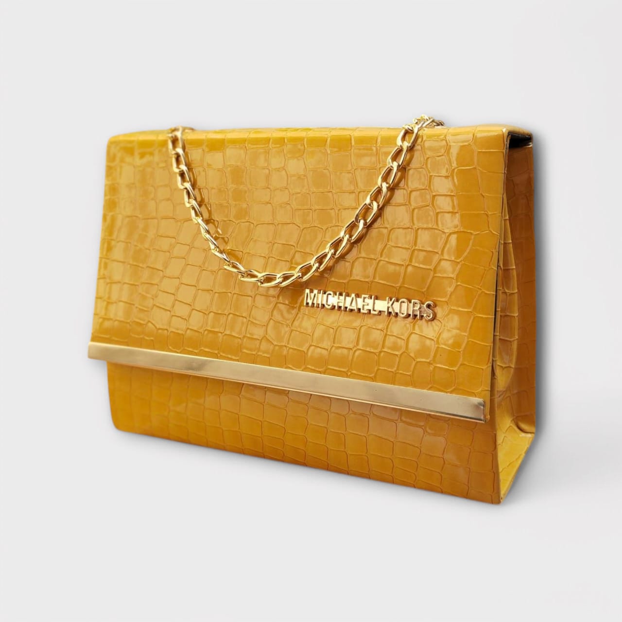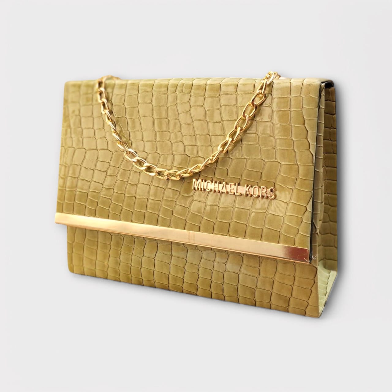 Its structured silhouette, gleaming gold hardware, and versatile carry options make it both stylish and functional. Whether you're dressing up for an event or elevating your daily look, this piece stands out with effortless charm.